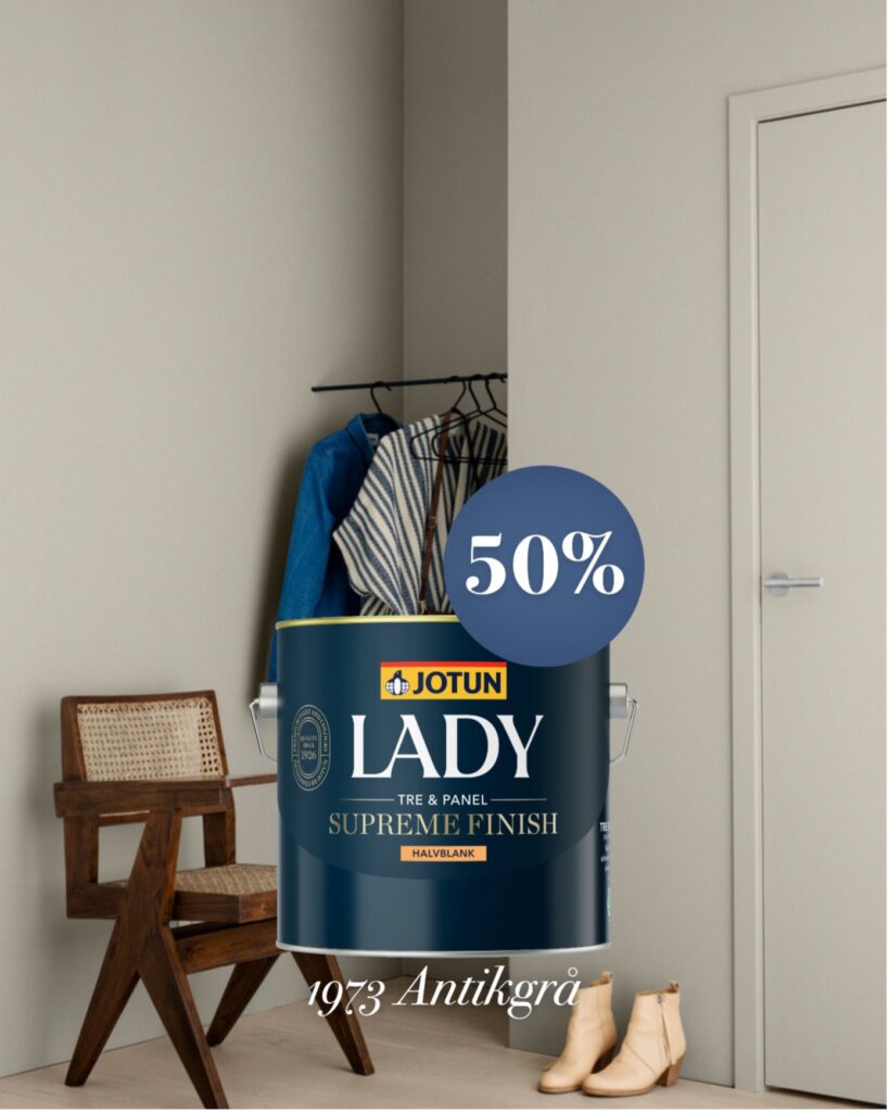 Vi passar också på att göra ett smartare val för miljön. Ibland händer det (mänskliga faktorn ni vet!) att en färg kan blandas fel. Det kan vara helt ny färg, men som råkat blandas i fel produkt eller kulör. Istället för att slänga den väljer vi att sälja den rabatterat – så att den kommer till användning.