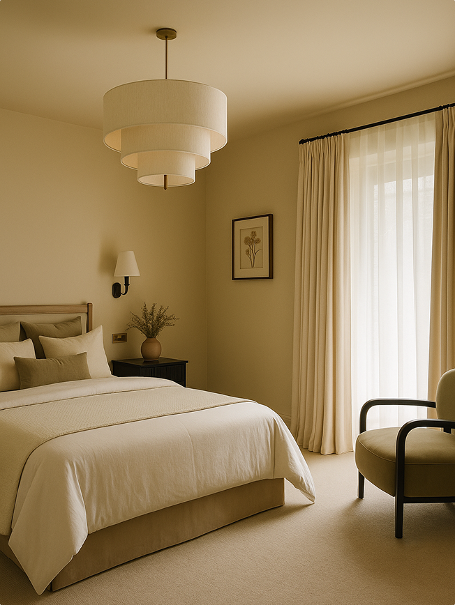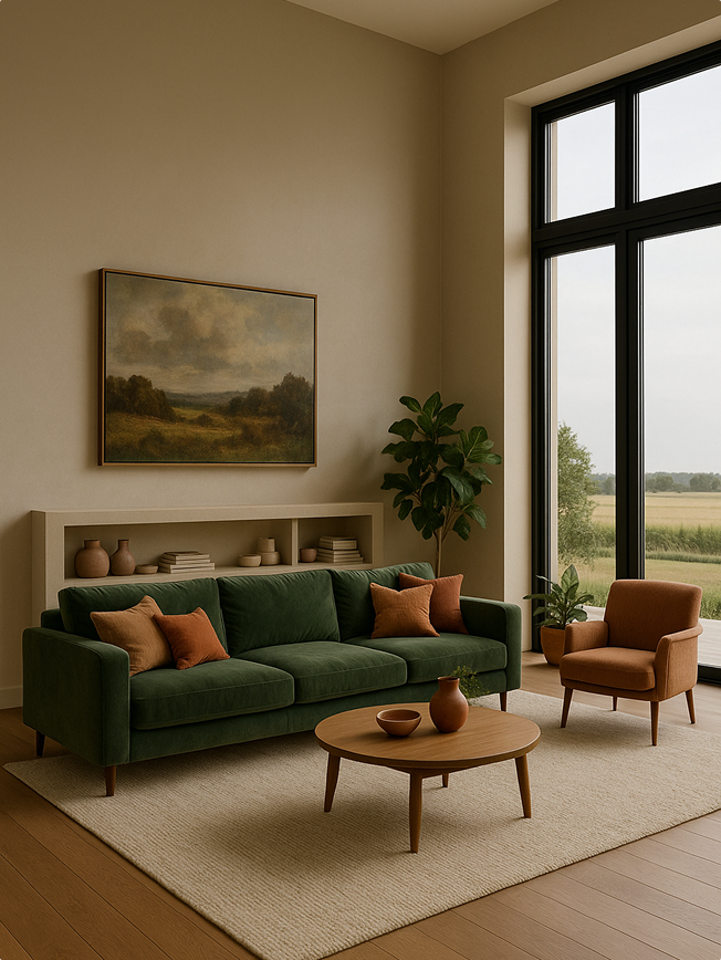 Beige är en av de mest användbara baserna i inredning. Den ger rummet ett varmt och inbjudande uttryck utan att ta över. Beige kulörer samspelar fint med naturmaterial som trä, linne och sten, och skapar en mjuk och harmonisk känsla. Perfekt för dig som vill ha ett lugnt och tidlöst hem där detaljerna får tala. Beige toner kan vara allt från ljusa sandnyanser till djupare, mer gyllene kulörer.