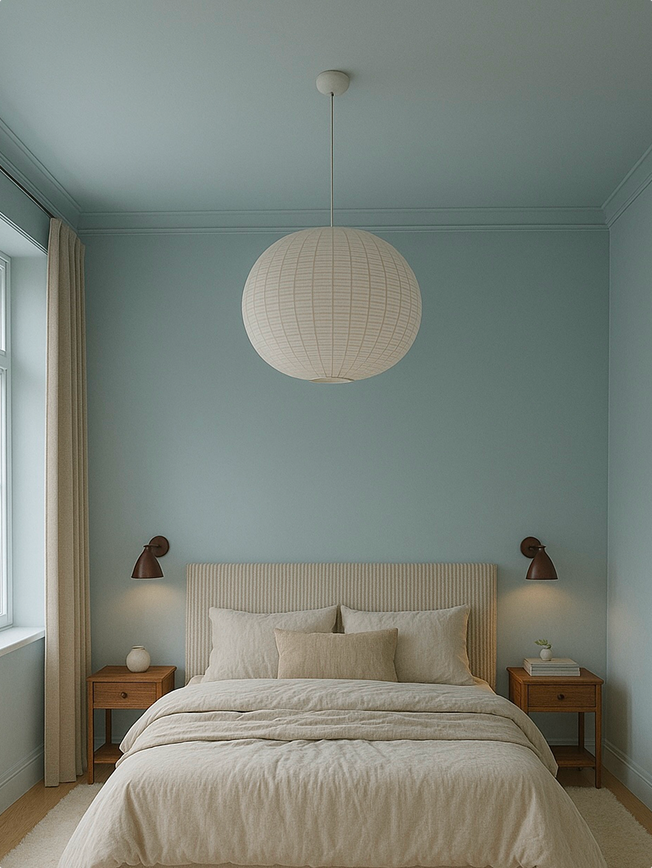 En ljus och lugn gråblå kulör som omsluter rummet med harmoni. Perfekt för arbetsrum, sovrum eller andra ytor där du vill bjuda in till stillhet och balans.