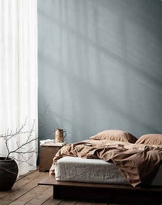 Puddle är en mjuk gråblå ton med en varm karaktär, inspirerad av stilla vattenpölar efter sommarregn. Ger en inbjudande och ombonad känsla som passar lika fint i sovrum som i sociala ytor.