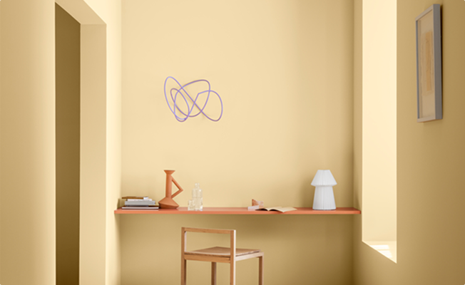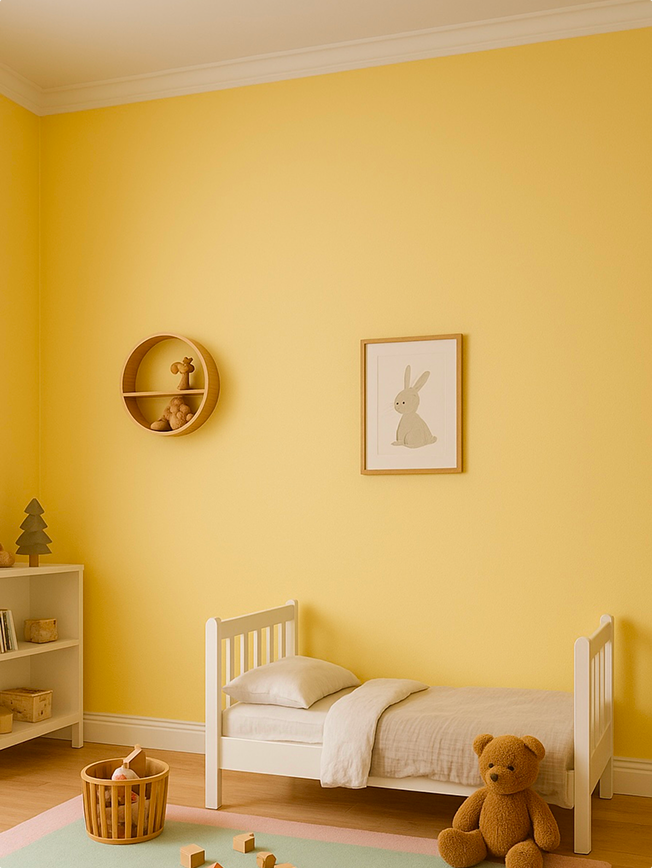 En pigg och solig gul kulör som fångar ljuset och sprider glädje i rummet. Perfekt i miljöer där du vill skapa energi och lekfull värme.