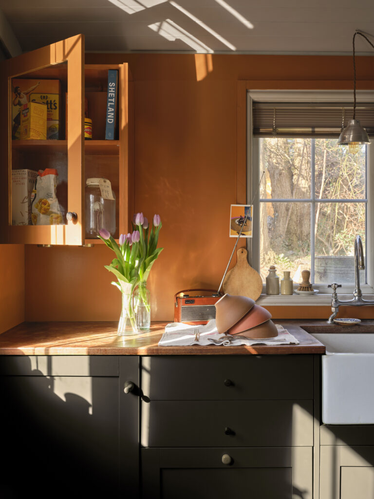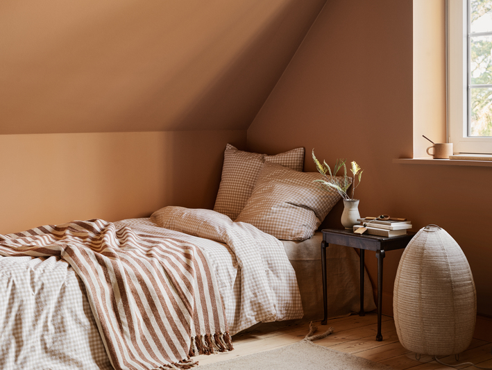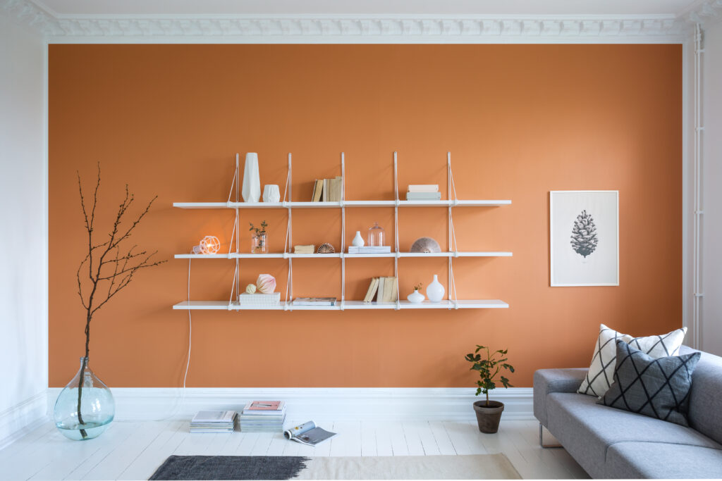Orange är en varm och glad kulör som för in energi och kreativitet i hemmet. Dämpade terrakotta- och rosttoner ger en ombonad och jordnära känsla, medan klarare orange nyanser skapar liv och lekfullhet. Orange fungerar fint i rum där man vill bjuda in till aktivitet, samtal och en välkomnande atmosfär.