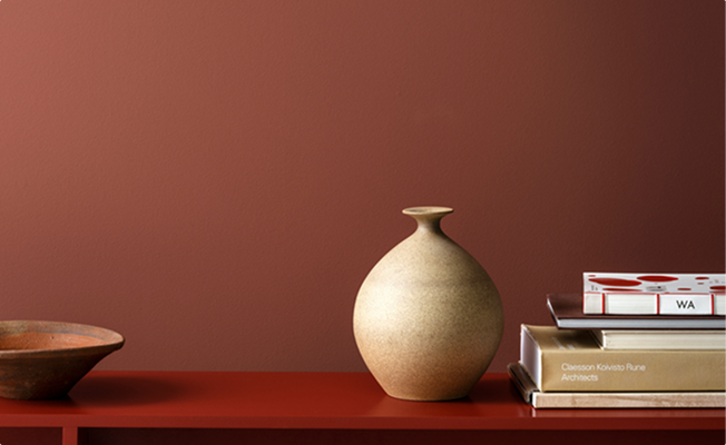 Rött är en färg med stor personlighet och värme. Den förknippas med liv, passion och närvaro, och skapar en inbjudande atmosfär i rummet. Dämpade och mustiga röda nyanser ger ett mjukt och omfamnande intryck, medan klarare röda toner tillför energi och karaktär.